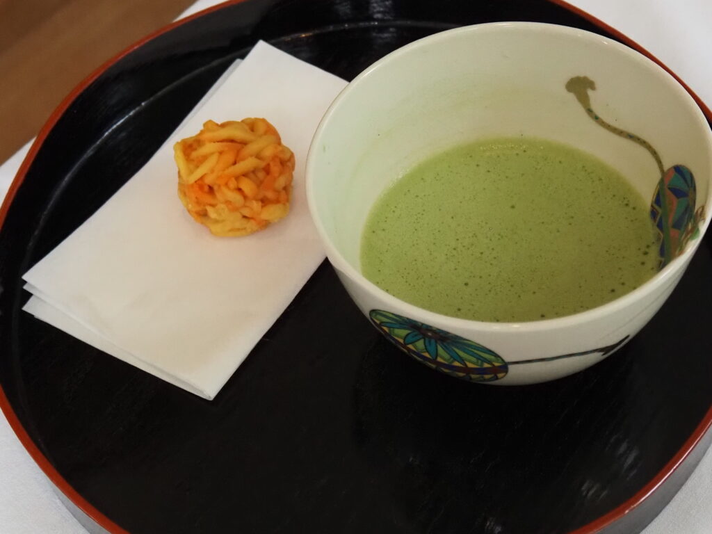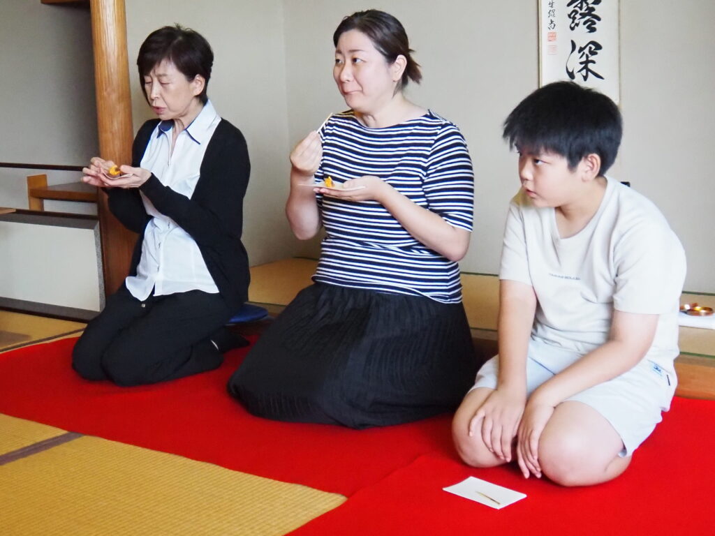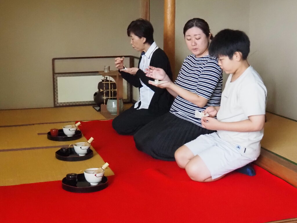 先生の点てたお茶をいただきながら、お作法を学びます。
