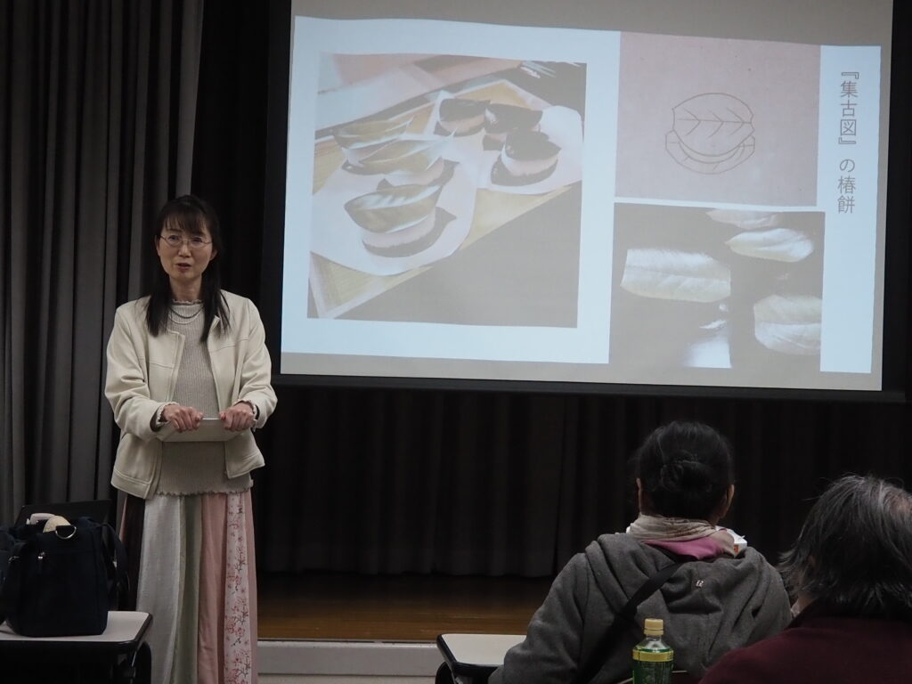 講師には、奈良女子大学大和・紀伊半島学研究所 古代学・聖地学研究センター協力研究員の前川佳代氏をお迎えし、『源氏物語』にも登場する古代の菓子「椿餅」について、解説と実際に作ってみました。