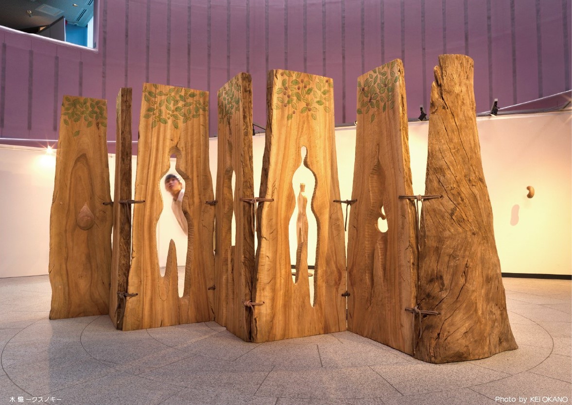 彫刻家・おもちゃ作家の江幡三香が、子育ての中から生み 出した木のえほん WOOK (Wood + Book)。 稲荷山公園で 過ごした日々の出来事や、子どもの目線で見つめた四季折々の自然やいきもの達との出会いを、手のひらサイズの小さなものから子どもが入れる大きなものまで、穴や凹凸など素材を活かして表現した木の絵本と、地元素材である西川材を使って生み出した木のおもちゃの数々を展示します。あわせて西川材の歴史や木材を通じた学び 「木育」についても紹介します。また本展では、木が持つ本質的な魅力を引き出すことに挑戦した新たな作品シリーズ 「木憶 -memory of wood-」を展示します。それぞれの木の個性や表情を活かし、人と自然の関係をテーマに制作した新作WOOKの世界をお楽しみください。