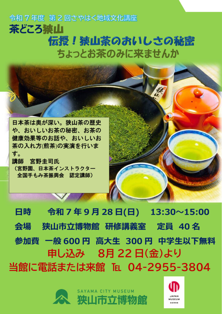 「茶どころ狭山 伝授!狭山茶のおいしさの秘密 ちょっとお茶のみに来ませんか」